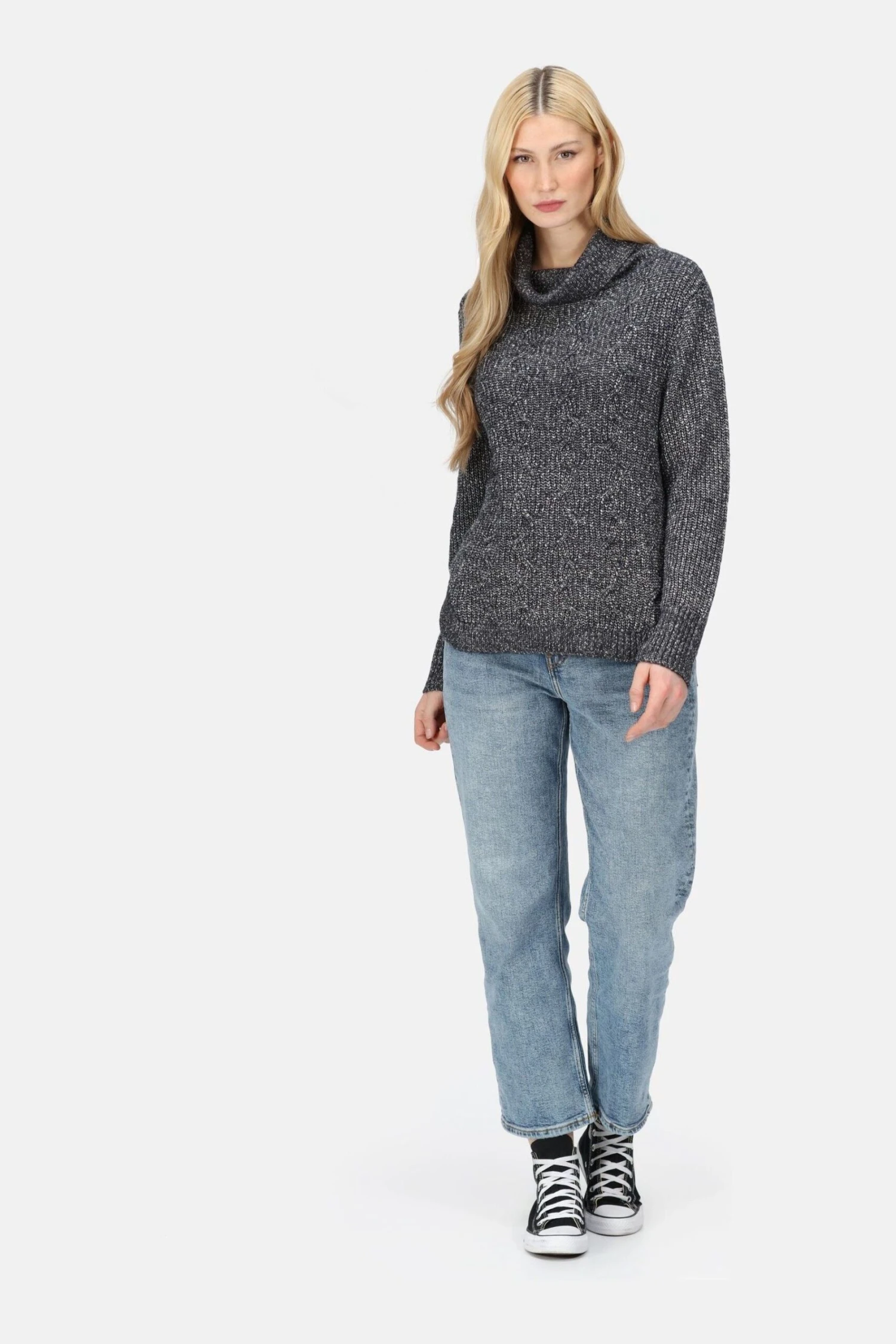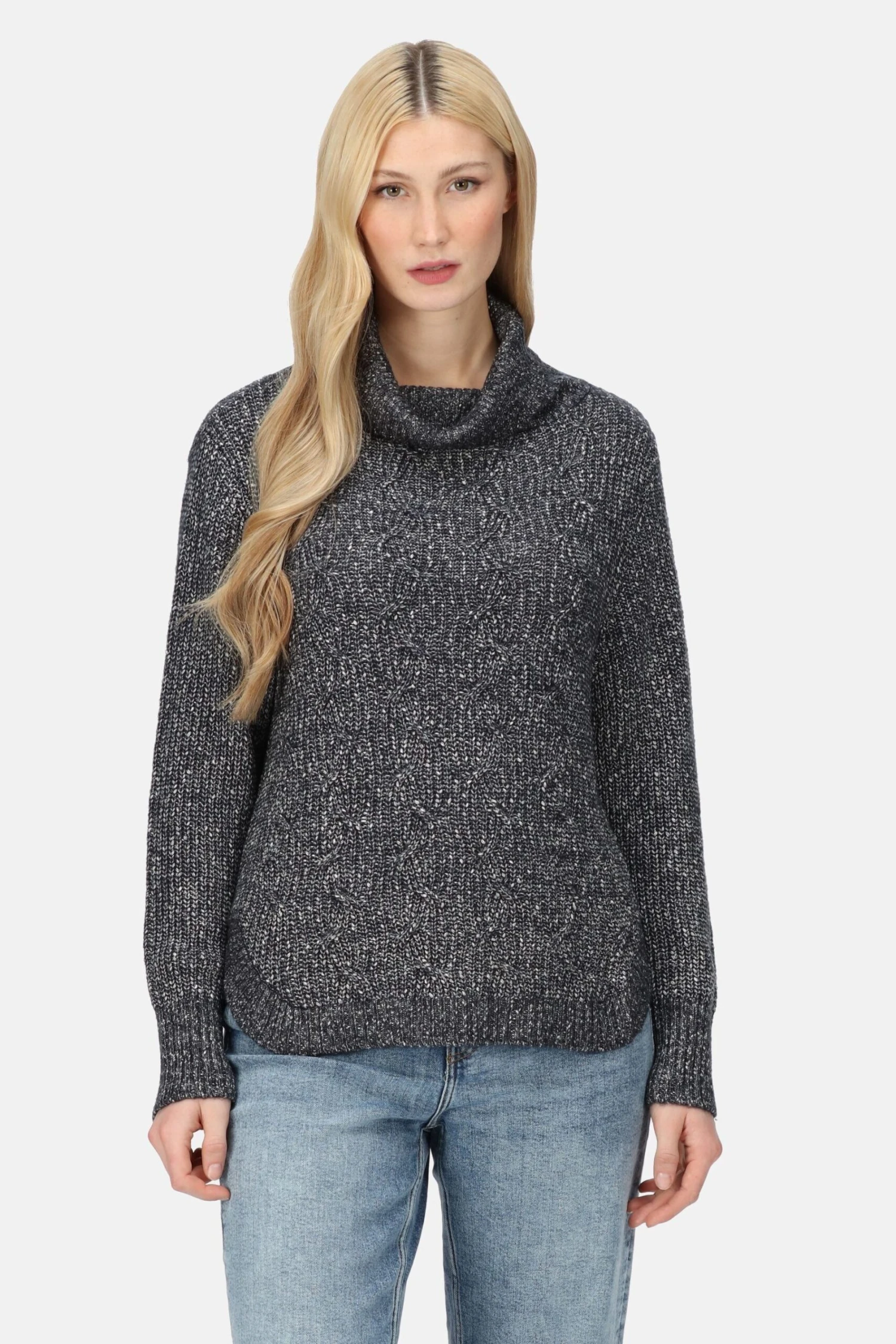 The Kensley women’s jumper from Regatta is the ideal winter layer. The ladies’ jumper is made with sustainable cotton for a soft feel. The roll neck keeps you cosy. It comes with a subtle pattern for added style. Wear with jeans for a relaxed look.