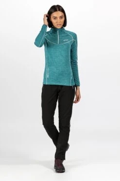 The women’s Mountain trousers from Regatta are made of quick-drying Isoflex stretch fabric with a DWR (Durable Water Repellent) finish and abrasion-resistant Durazone overlays at wear points. Engineered with a slim, ergonomic fit and articulation at the knee for outstanding mobility. With the Regatta Outdoors tab to the waist.