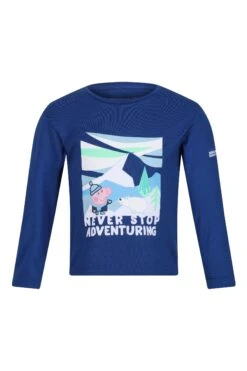 The Peppa Long Sleeve Graphic T-Shirt from Regatta. The kids T-shirt is made from a cool weave cotton blend that s soft against skin. Kids are sure to love the fun Peppa Pig design. It’s the perfect base layer for outdoor summer adventures.