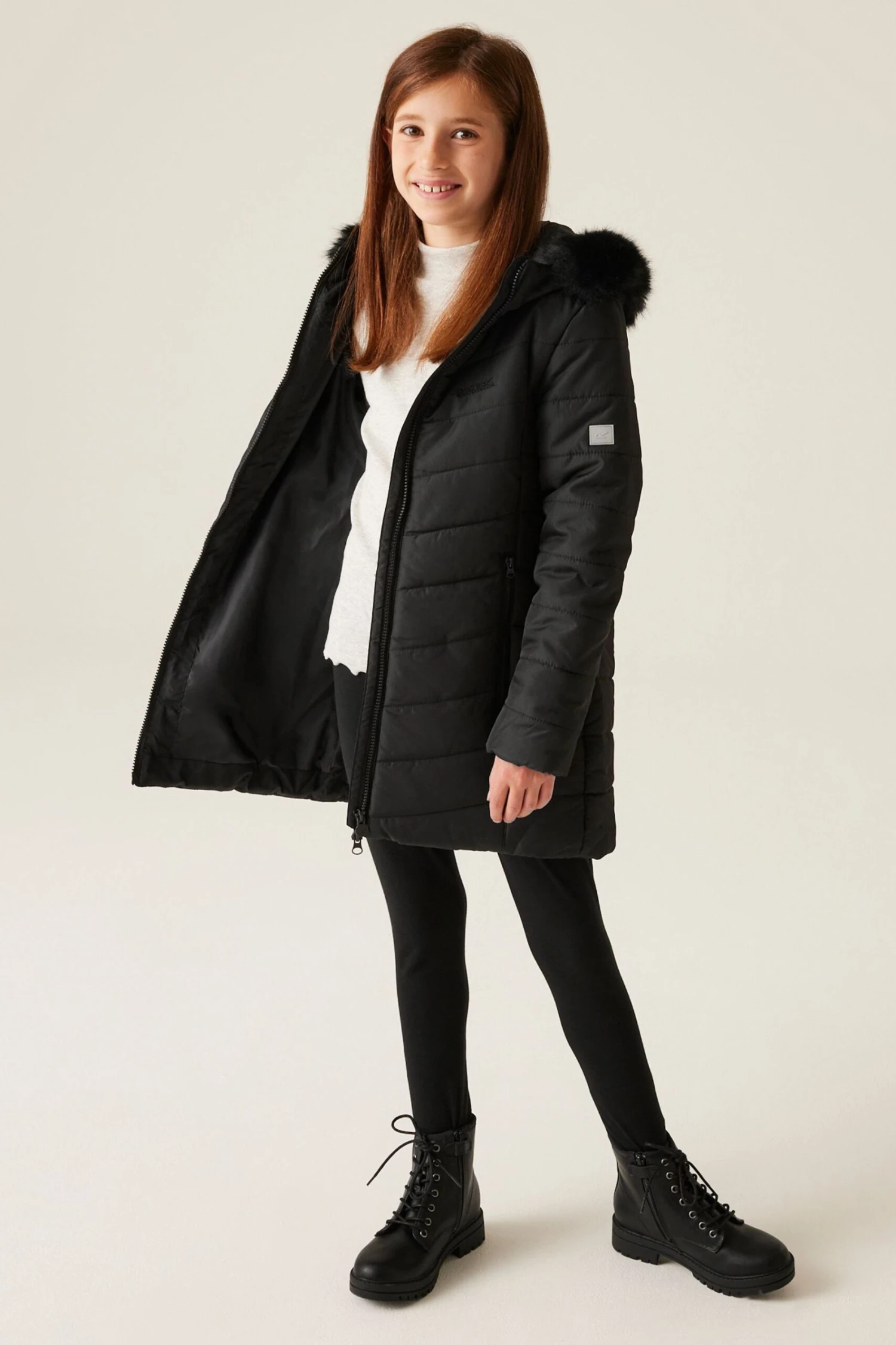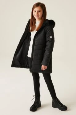The Fabrizia jacket from Regatta. With a water-repellent finish, and insulation, the Fabrizia is made for winter wear. Perfect for the school run and weekend adventures with friends. The faux fur trim to the hood adds a stylish edge.