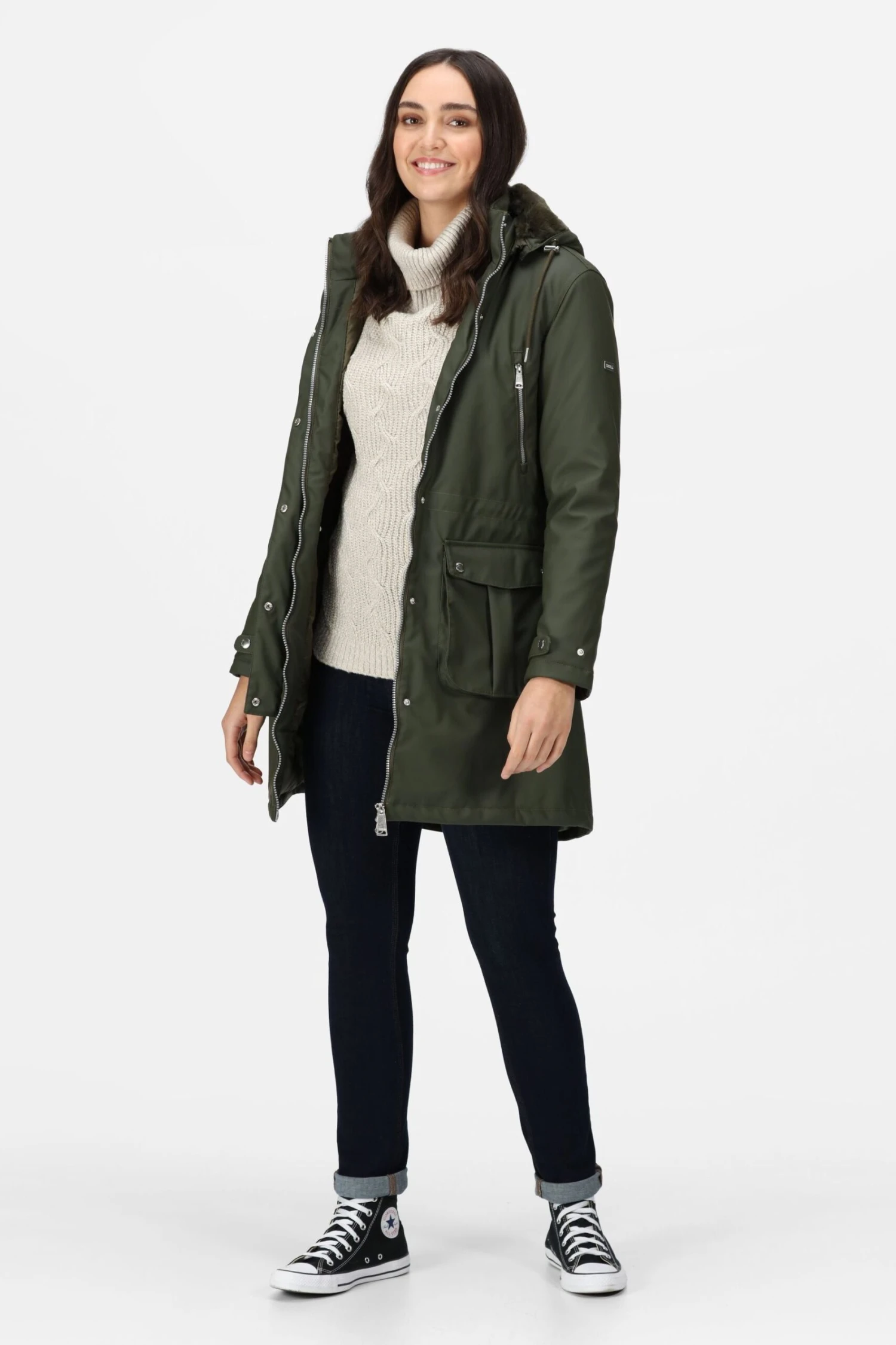 The Fabrienne women’s winter jacket from Regatta is ideal for everyday wear. The ladies coat comes with a water-repellent finish to see off light rainfall. There’s a faux fur trim on the inside to keep you warm. The bulk-free design makes sure nothing gets in the way.