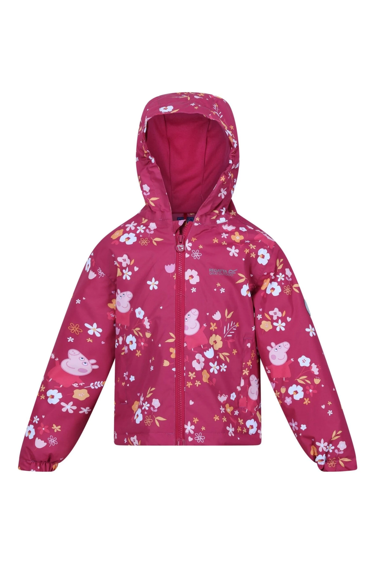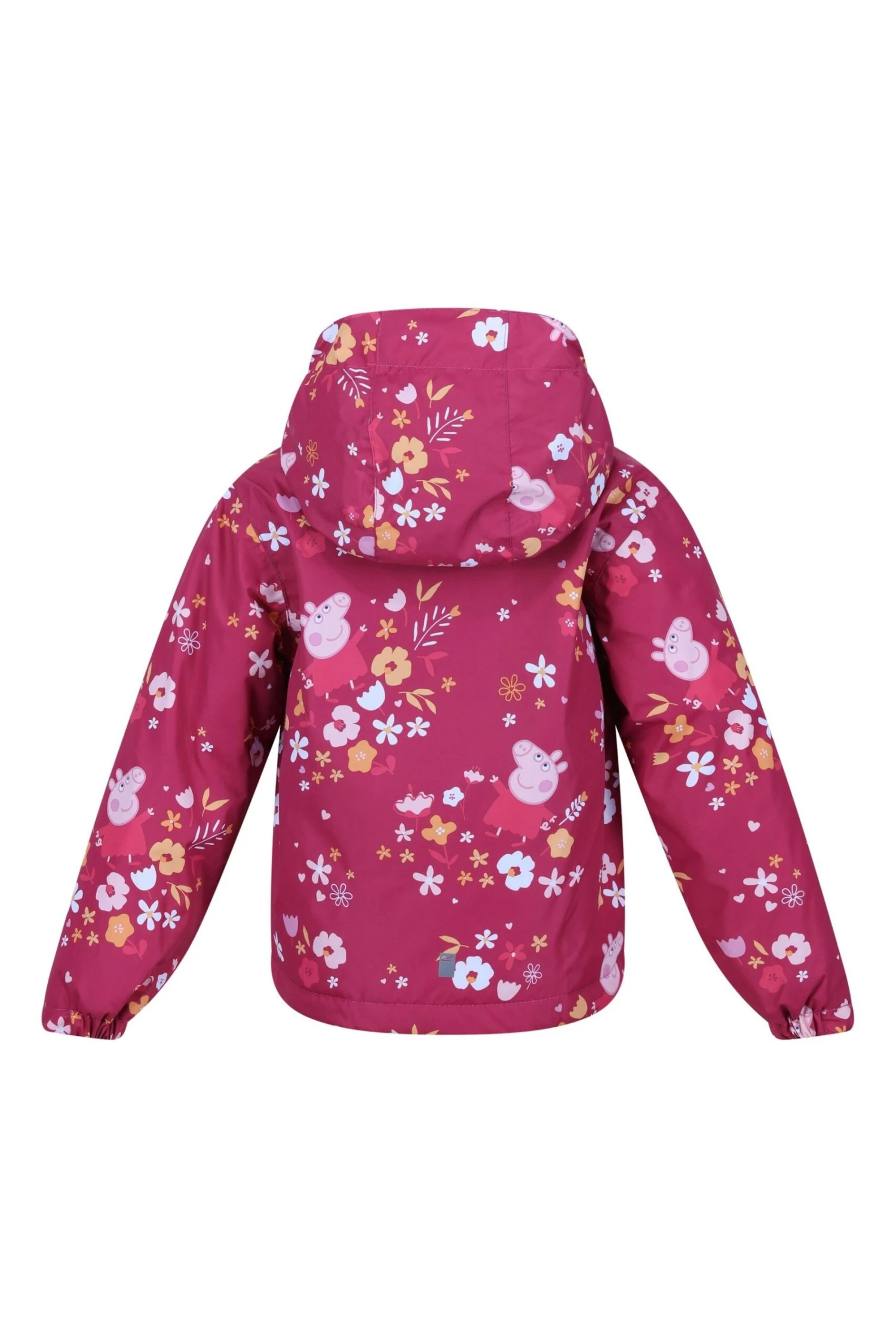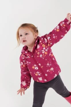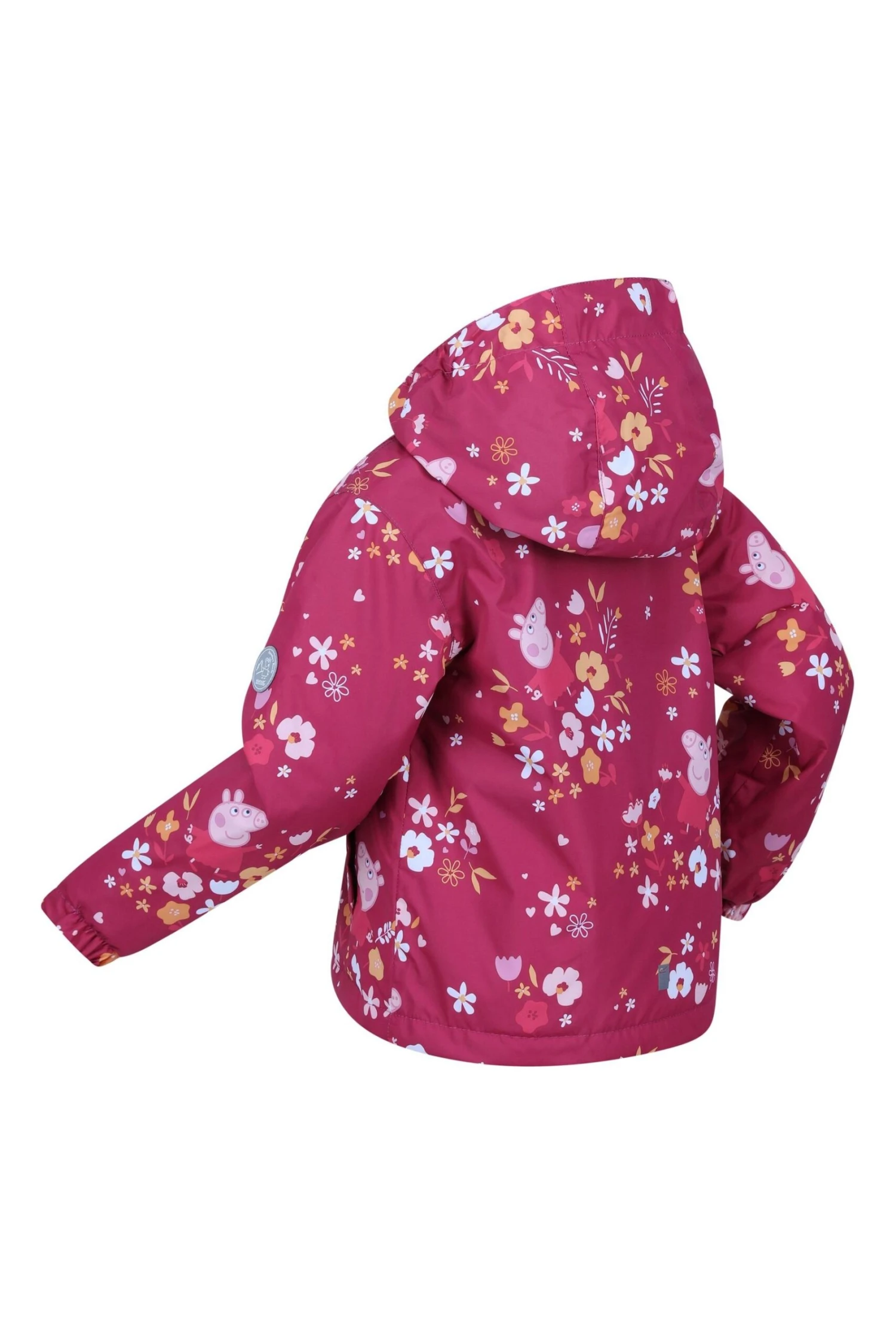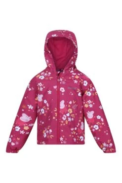 The Padded Muddy Puddle Jacket from Regatta. The jacket comes with a water-repellent finish and warming insulation. The reflective trim is ideal for visibility in low light. The jacket comes with a Peppa Pig print, perfect for brightening up rainy days outdoors.