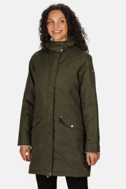 The women’s Rimona Parka from Regatta is made of waterproof/breathable Isotex 5,000 performance fabric with warming Thermoguard insulation. Cut mid-thigh length with curved seams, fine quality faux-fur trims and the Regatta Outdoors badge on the left sleeve.