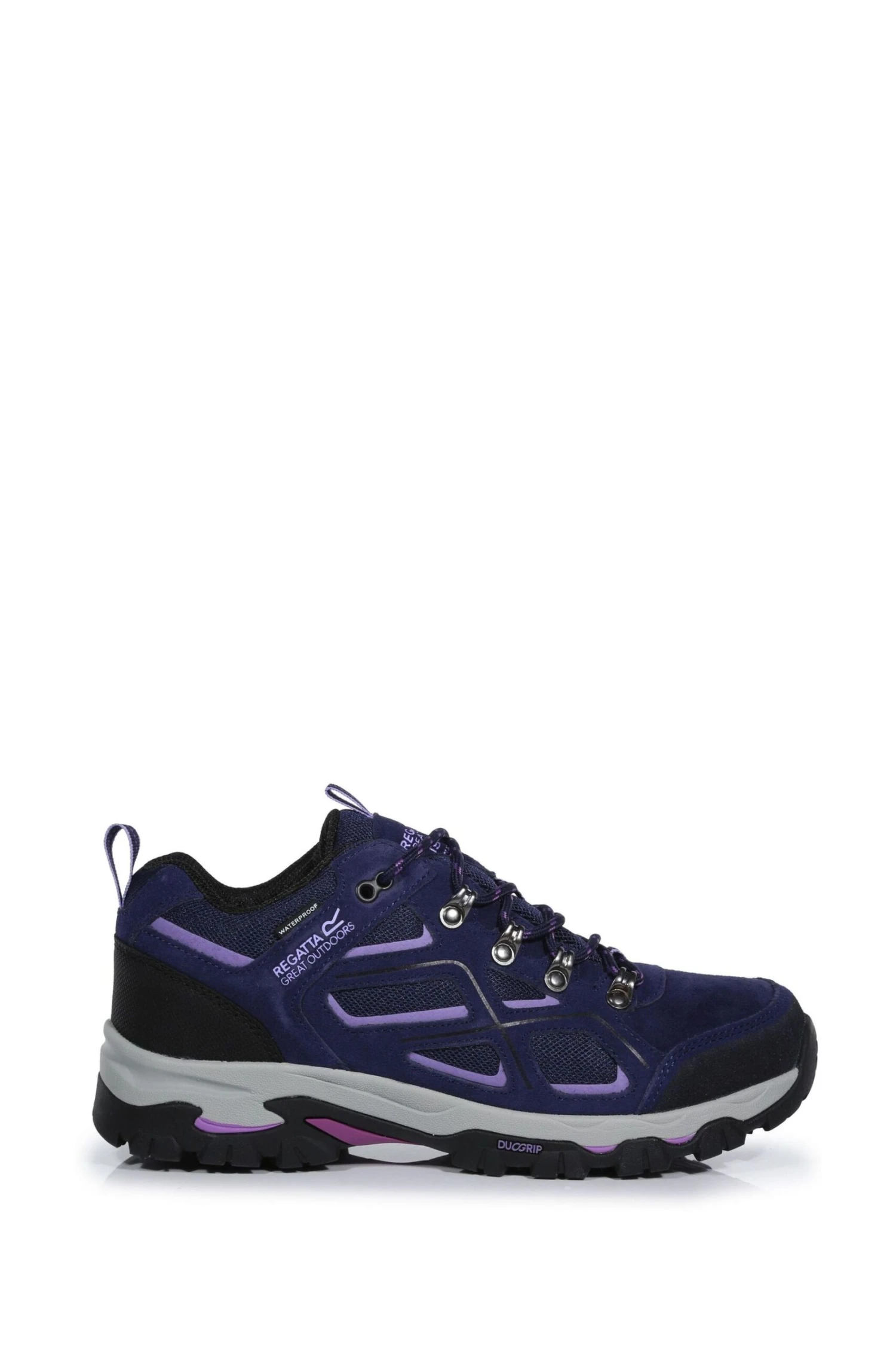 Whatever the weather you can add to your outdoor activity footwear collection with the reliable Lady Tebay Low hiking boots by Regatta. Made from Isotex and Hydropel waterproof/ breathable fabric with a EVA footbed for underfoot comfort and support. The stabilising rubber outsole for underfoot protection and reduced foot fatigue will provide a fantastic grip on loose paths and muddy banks.