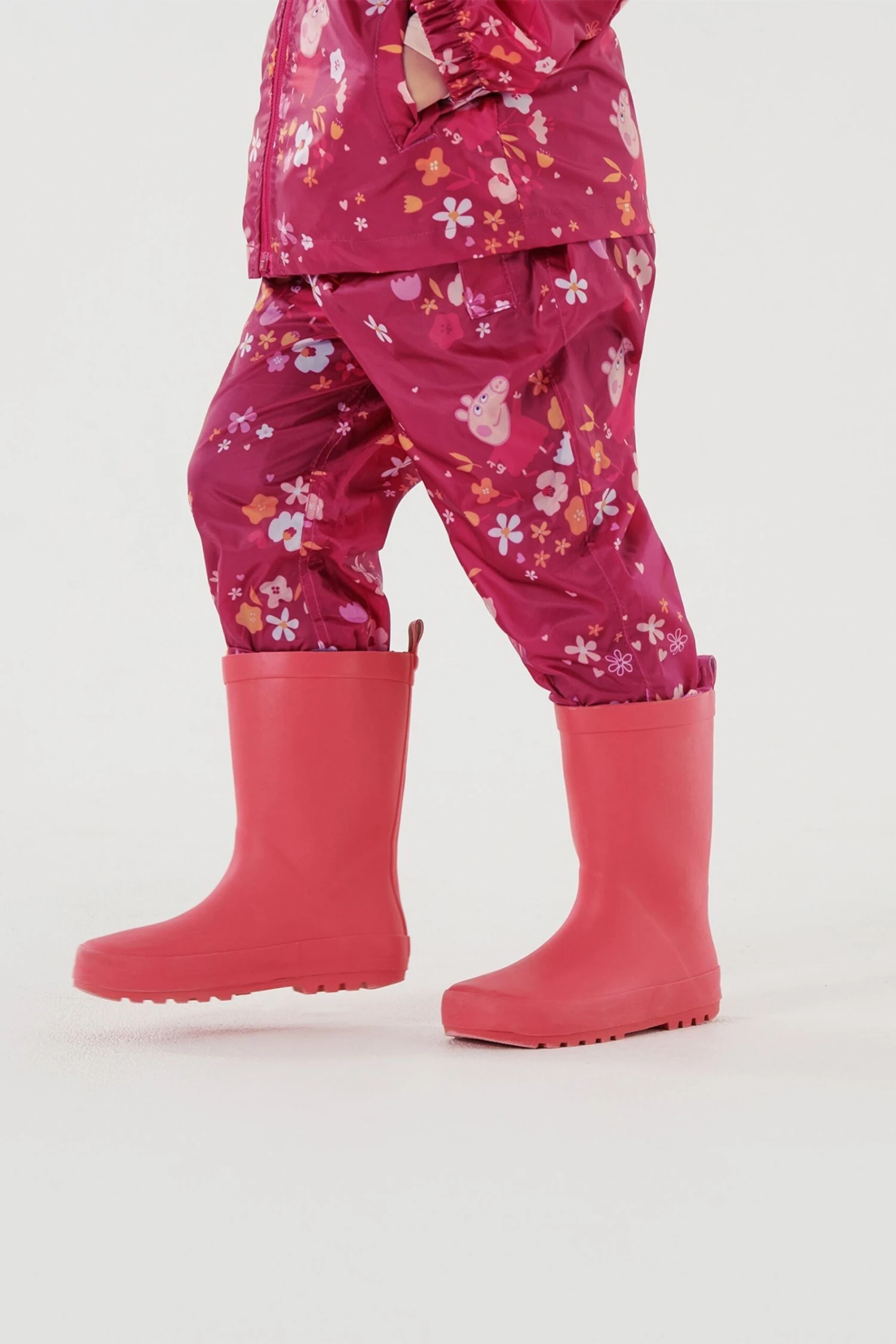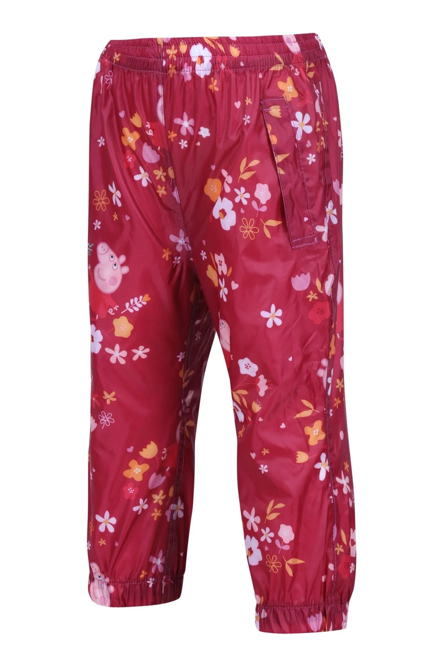 The Peppa pack-it trousers from Regatta. The trousers come with a water-repellent finish and a breathable fabric to keep them fresh. Peppa Pig sure loves an adventure, and with these Regatta trousers, your little one will too! They come with a fun print, perfect for brightening up rainy days outdoors. Pack away them away into their own stuff sack.