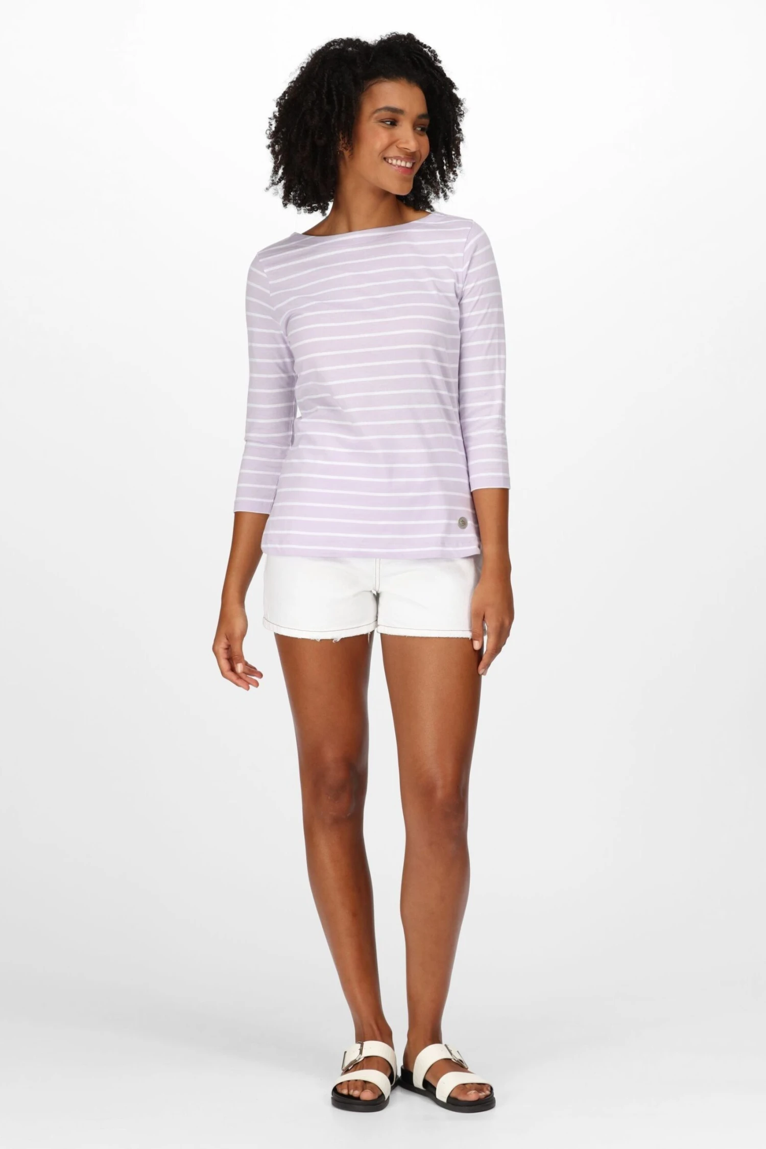 The Bayla women’s 3/4 sleeved top from Regatta is a spring wardrobe must have. The ladies long-sleeved top is crafted with Coolweave 100% sustainable cotton for a comfy and cosy fit. The shaped hem brings the style. Complete the look with summer trousers and sandals.